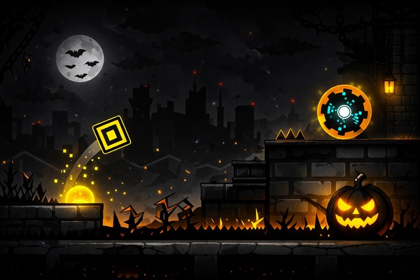 Dashmetry Spookystep is a Hard rhythm platformer featuring eerie Halloween visuals, precise timing and flow-based movement challenges.